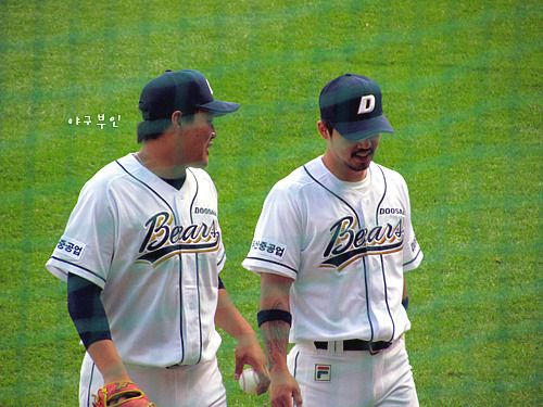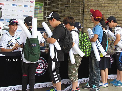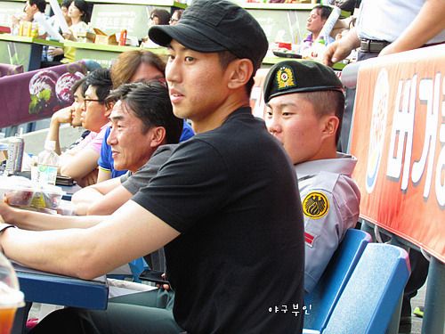 이현호 선수와 류지혁 선수가 야구장에 왔네요..오늘 상무 선수들 외박 나왔답니다..^^