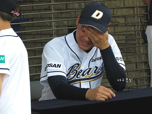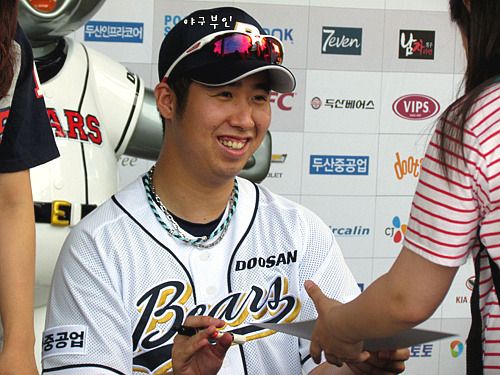 팬들에게 연신 웃음을 지어보이는 유희관 선수