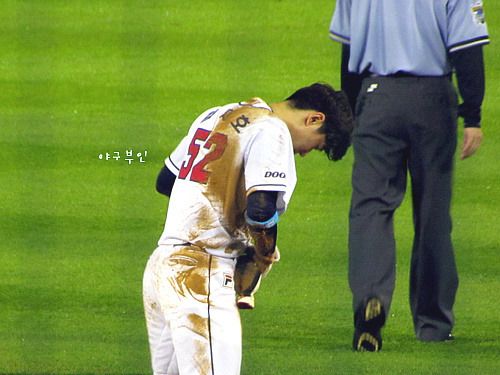 거기에 정재훈 투수는 손 어딘가를 공에 맞아서 내려가고 오현택 투수는 왜 나온 건지