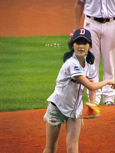 오늘 시구자는 영화 '미스터 고'에 출연한 중국배우 서교 孃