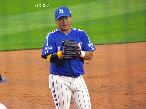 이승엽 선수를 외야 플라이아웃 시킨 공을 챙겨주는 최준석 선수..고맙다고 인사하는 꼬꼬마