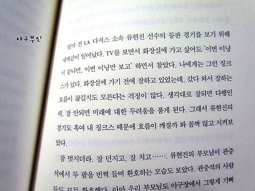 받은지 얼마 안 됐는지라 아직 각잡고 읽지는 못 했고 대충 훑어봤는데..야구팬이라면 한 번