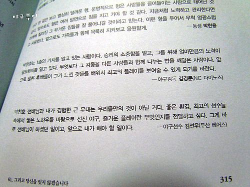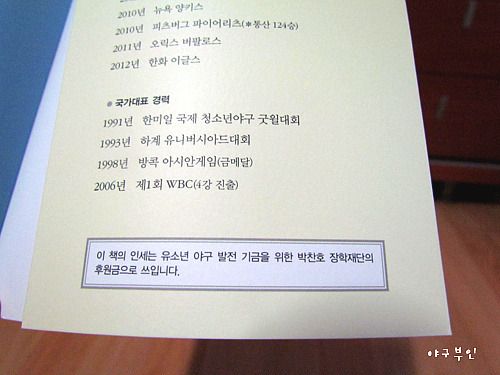 이 책의 인세는 유소년 야구발전을 위한 후원금으로 쓰인다고 하니..한 권씩 구입하세요..^^