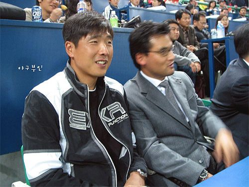 지난 07년, 한국시리즈 1차전이 열린 문학구장에서 만난..박찬호 선수와 홍원기 코치