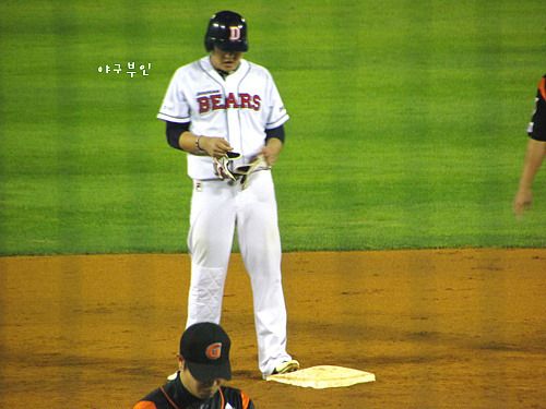 수비가 안 좋았던 2루수 오재원 선수 내려가고 손시헌 유격수..김재호 2루수