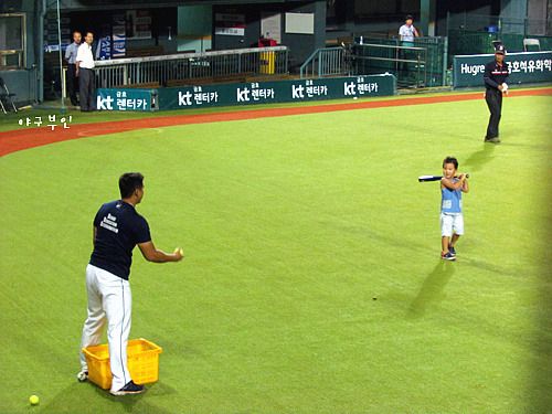 경기가 끝나고 아들내미와 놀아주는 홍포..화철이, 정말 잘 치고 잘 받고..잘 던지더군요