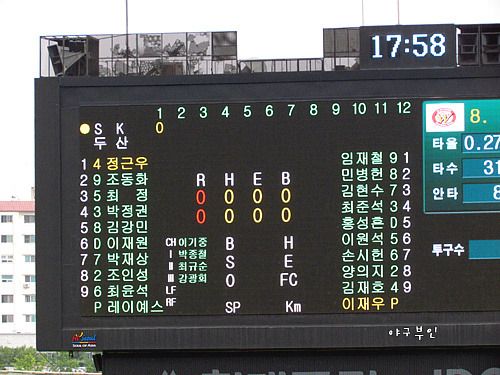 쩝~ 할 말이 없는 오늘 경기네요..-.- 1회 초에 상대타자들을 가볍게 잡아내는 선발투수