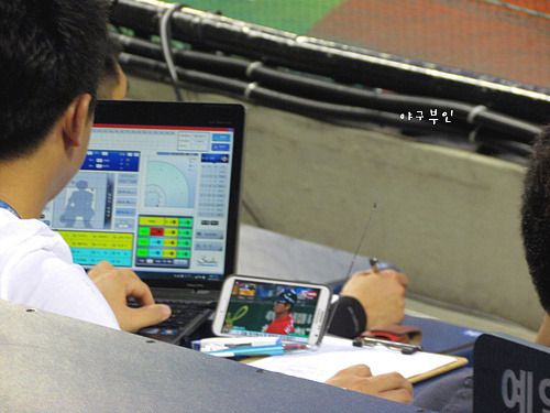 전력분석원들은 야구장에서 야구를 보면서 DMB로 또 야구를 봅니다..ㅋ
