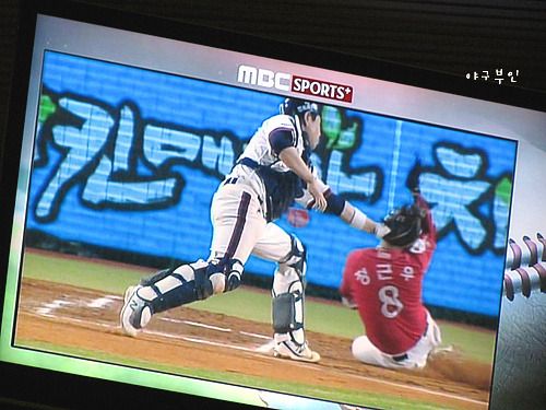 임재철 선수의 멋진 홈송구 아웃~!!
