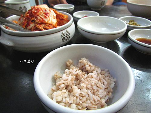 메인음식이 나오기 전에 보리밥 좀 주세요..하면 이렇게 뜸 잘 들은 보리밥을 주신다는..^^