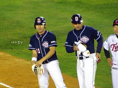 정성훈 선수의 실책으로 한 점 더 추가해서 2대 0으로 앞서는 베어스