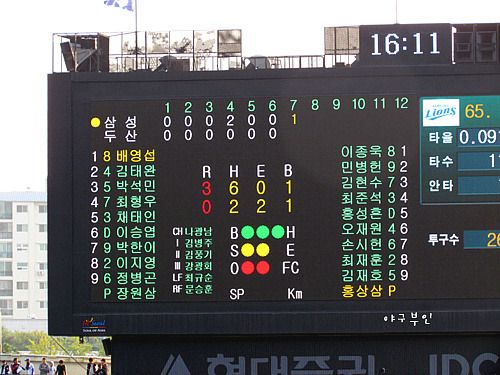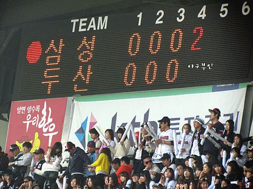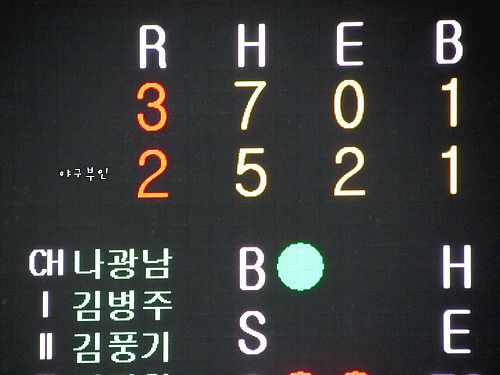 오늘 경기 결과는..2대 3으로 베어스 패..두산이라 두 점..삼성이라 석 점인가요..?? ^^;;