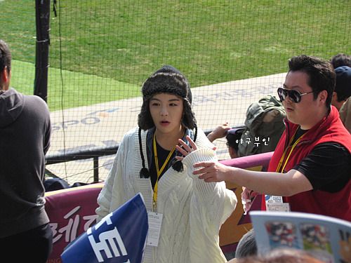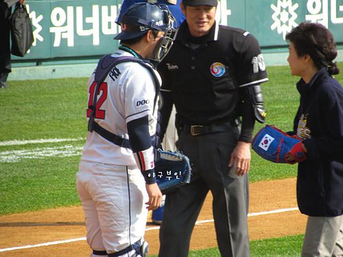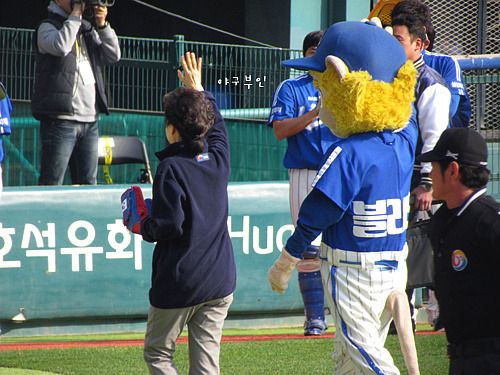 원래 시구자들은 3루에서 나와서 1루로 퇴장을 하지요..그런데 뭐 자기 맘이니..-.-