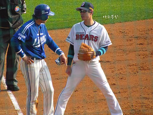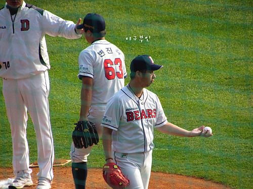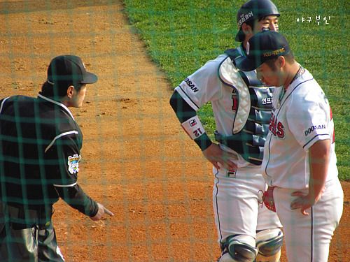코치가 두 번 올라갔으니 내려오셈..그래서 내려오는 유희관 투수..울 코치도 참..-.-