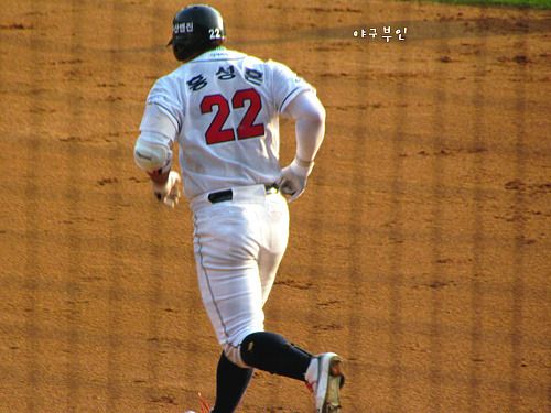 그러나 홈런을 때려낸 홍성흔 선수..7회 말에 드디어 한 점을 냅니다