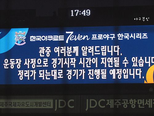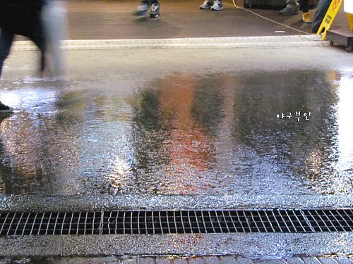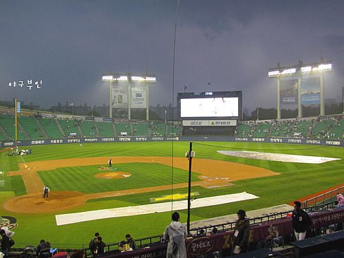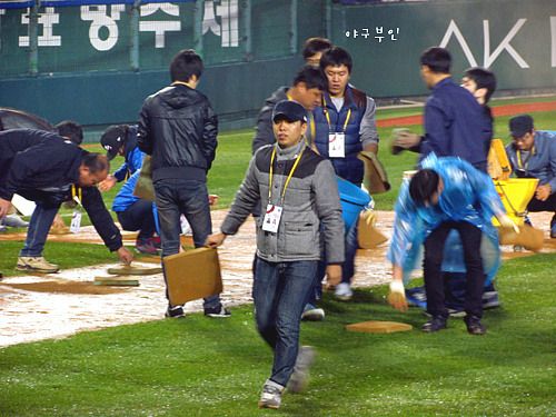 21세기의 한국야구장에서 볼 수 있는 20세기 물빼기 작업