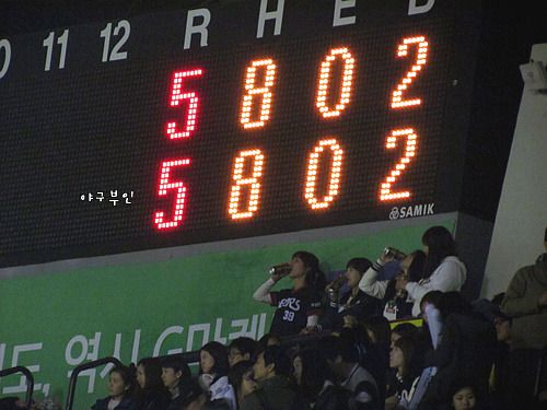 바로 최준석 선수의 홈런이 나오면서 동점..동점만 만들었지 역전을 못 한 게 한입니다..ㅠㅠ