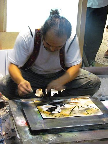 스프레이를 이용해 그림을 그리는 아저씨..우리나라에도 있지요
