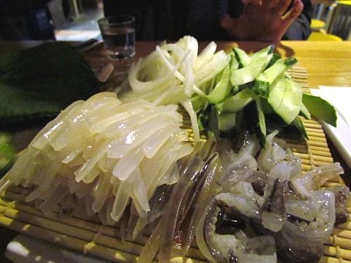 먹음직스런 오징어회..보기에는 많지 않은 것 같은데 먹어도 먹어도 바닥에 계속 깔려있음..^^