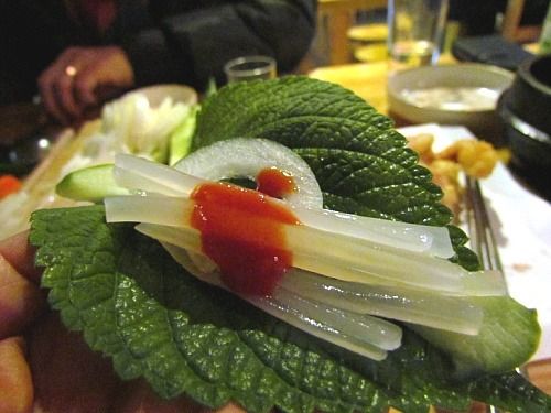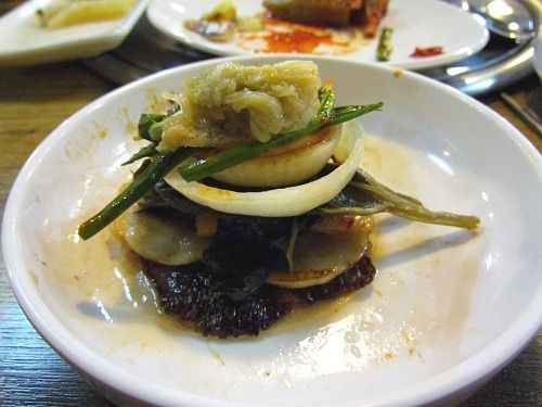 그래서 쌈싸먹으라고 내준 반찬을 많이 올려먹다 보니 관자 맛도 모르겠고 차돌박이의 맛도 잘