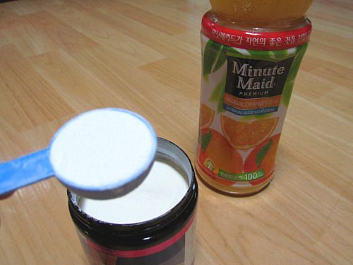 오렌지주스에 한스푼을 넣었는데요..음, 맛이 어떨지..^^;;