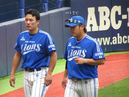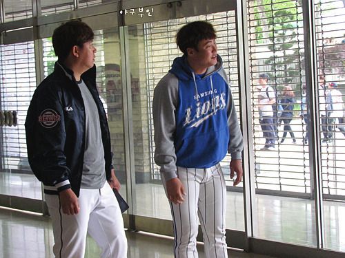 오늘 경기 전, 중앙문으로 들어가는데 이현승 선수와 안지만 선수가 얘기를 하고 있더군요