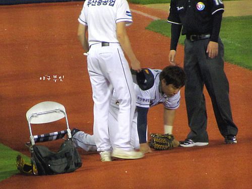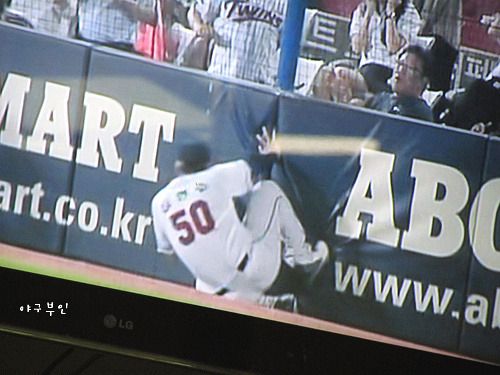 8회 초, 호수비를 보인 김현수 선수..그래도 몸 좀 생각하라구~!!
