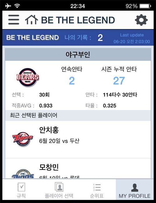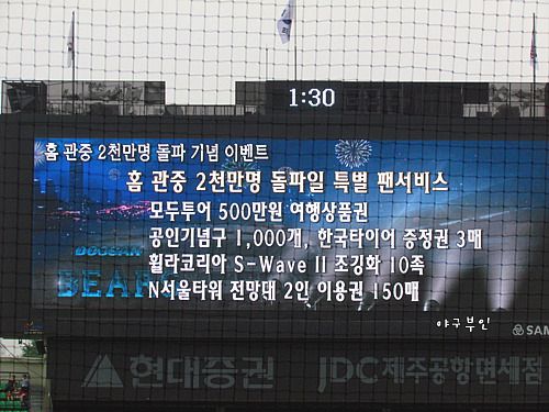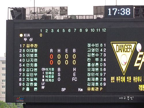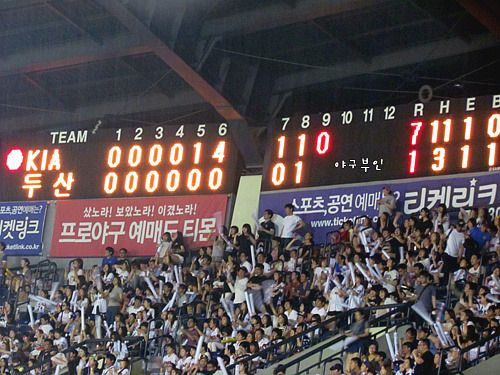 안타 세 개..상대방의 실책을 묶어서 어렵사리 한 점 획득..1대 7로 패배..5위 베어스..끝~!!