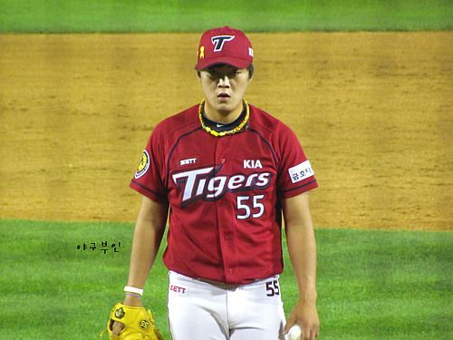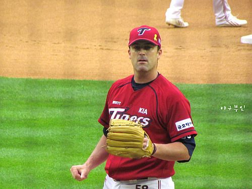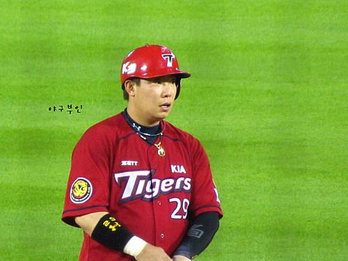 잡아채는 것 같았으나..?? 그만 가랑이 사이로 또르르~~!! 그이후 넉점을 뽑아낸 타이거즈