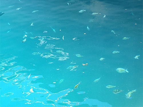 맑고 파란 바다에서 떠다니는 물고기들