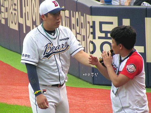 옆집과의 경기 때 수비 멋졌다고 했더니 넘 좋아하던 최주환 선수..^^