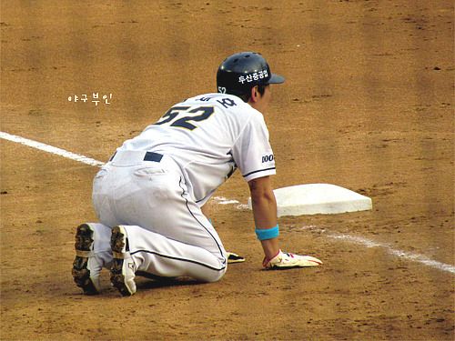 에구..조인성 포수..안 다치셨음..?? 베이스 위에서 삐그덕..아웃~