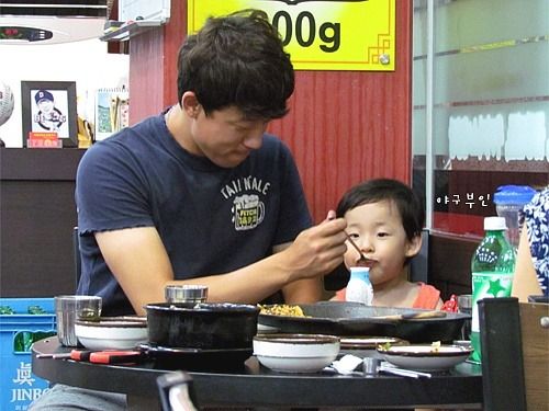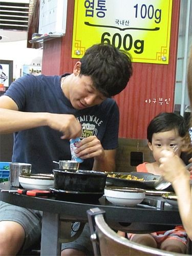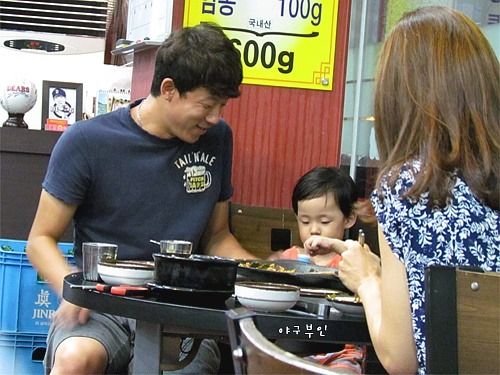 한창 식사를 하고 있는데 오 선수가 왔어요..올스타 브레이크 기간이라 온식구가 함께..^^