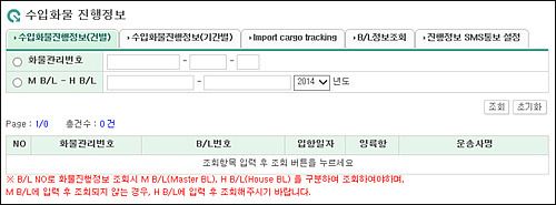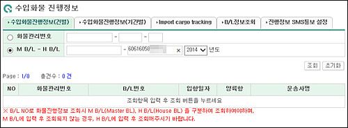 저렇게 M B/L - H B/L 이라고 쓴 곳에 택배번호를 넣은 후 조회를 클릭합니다