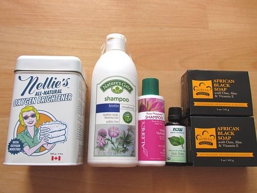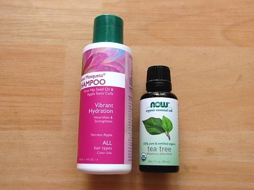 사과향이 나는 샴푸(왼쪽)와 오가닉 티트리인데요 샴푸는 체험용 작은 용량인데 1달라에