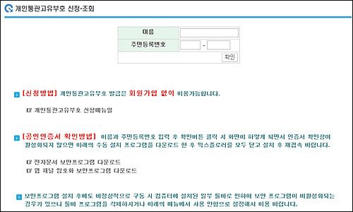 들어가서 고유부호 신청을 하면 됩니다..단, 공인인증서는 꼭 필요하다는 것을 유념하시구요