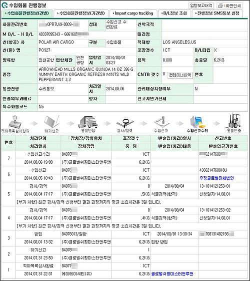 그래서 통관조회를 해봤는데 주문 후 3일 만에 도착을 한 제품들이 계속 통관중이더군요..-.-