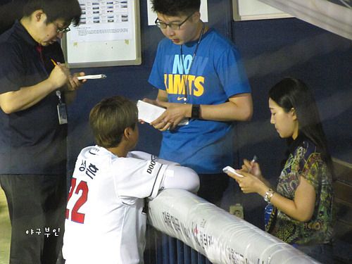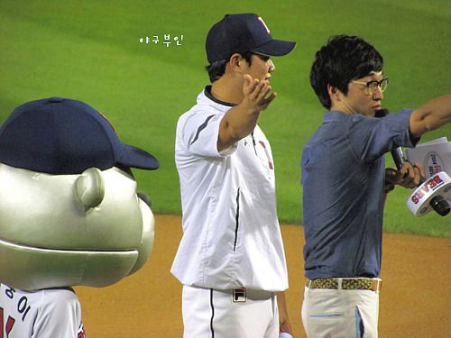 넘 웃겼어요..둘이 수다를 한참 떨다가..채태인 선수가 비키라고..안 보인다고 했어요..ㅋㅋㅋ