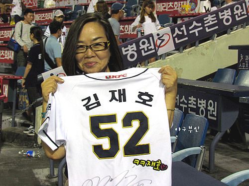 지난 주말에 한국에 와서 야구를 지켜보고 있는 시게코 씨..무척 행복한 얼굴이십니다..^^