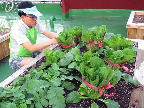 배추와 무가 자라고 있는 옥상텃밭..^^