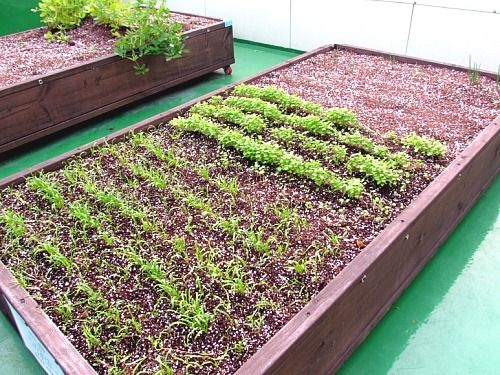 앞쪽 세 줄이 배추 모종..그 뒤가 무 모종