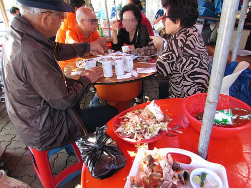 이 가게 쥔장이 직접 쪄주시는데 먹고 가면 1kg에 3만원..그냥 구입만 하는 것은 2만 8천원