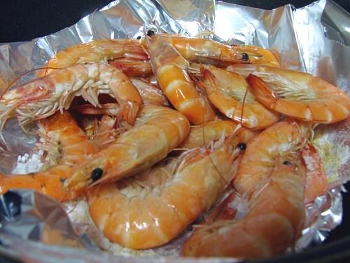 집에 오자마자 아이들 먹이려고 꽃게 찌고 새우 굽고..^^