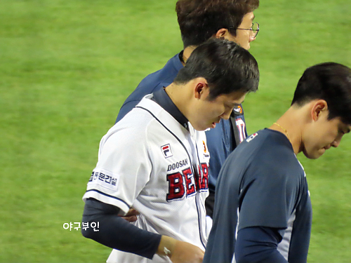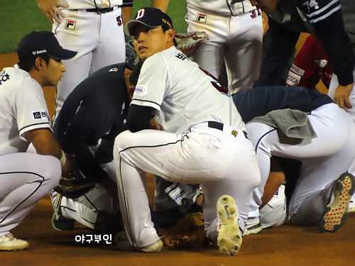 포구를 하다 타구에 맞은 허경민 선수..ㅠㅠ