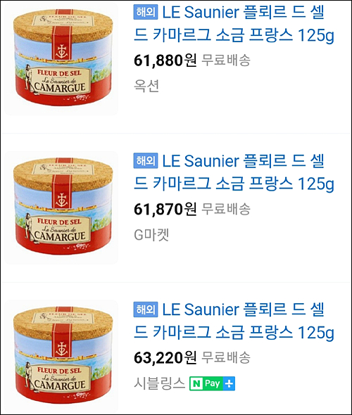 소금계의 에르메스라는 소리도 있고..ㅋㅋㅋ 암튼 마트에 진열돼 있던 소금을