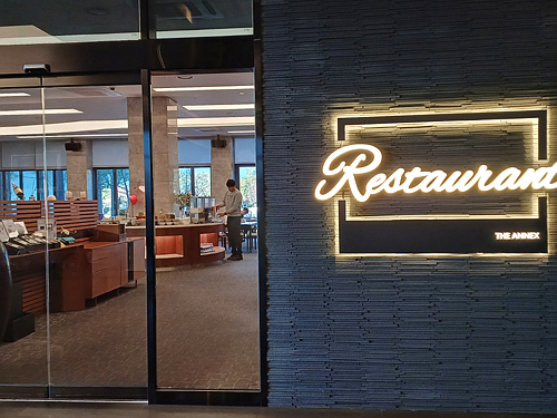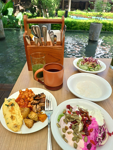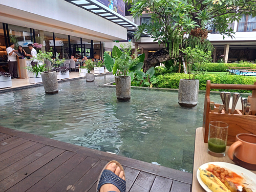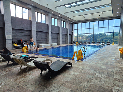 수영장이 내려다 보이는 곳에 식당이 있는데 멋지지 않나요..?? 밥이 술술 들어갈 듯