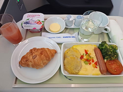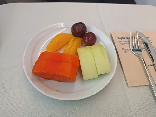 그런데 제가 안 먹는 게 맘에 걸렸는지 승무원이 따로 비스킷과 과일과 차를 주셨어요