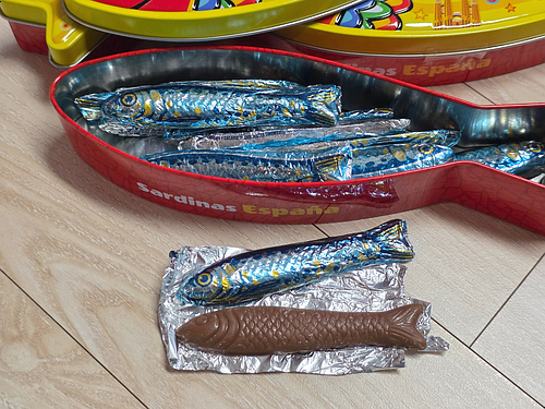 물고기 밀크 초콜릿..한 통에 11유로로 많이 안 달고 맛있습니다..선물용으로 좋은 듯